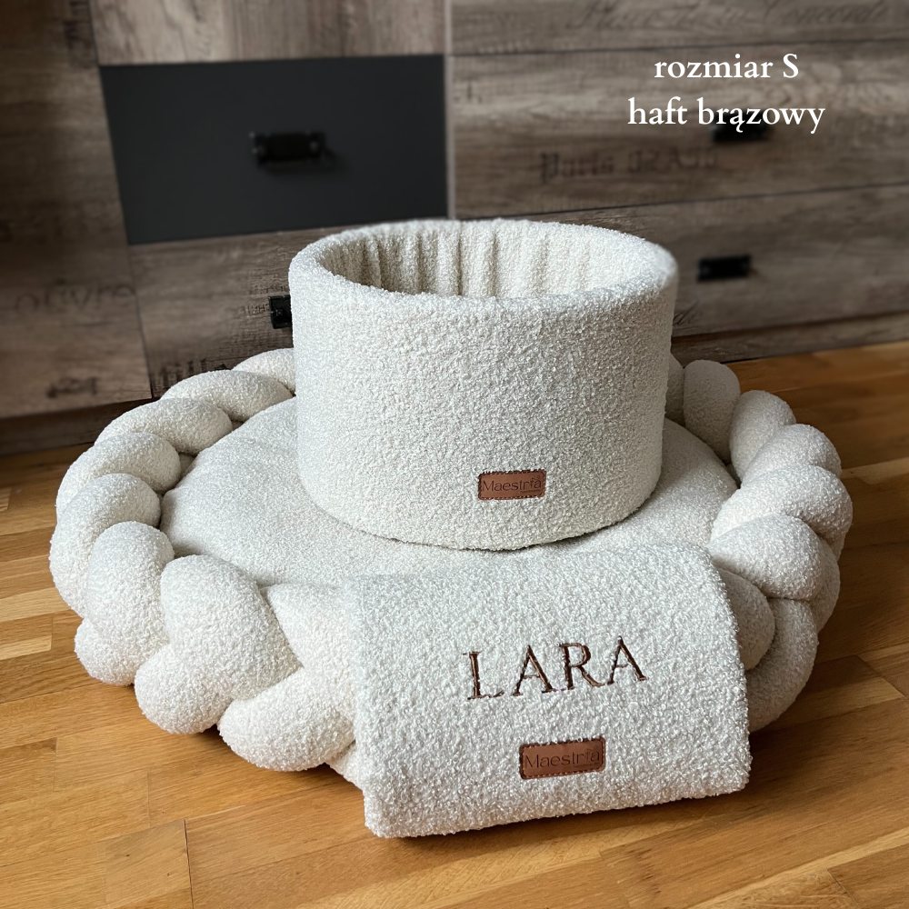 Dodatkowo oferujemy możliwość personalizacji legowiska imieniem psa, co podkreśla wyjątkowość nowego domownika i pięknie dopełnia wnętrze.
