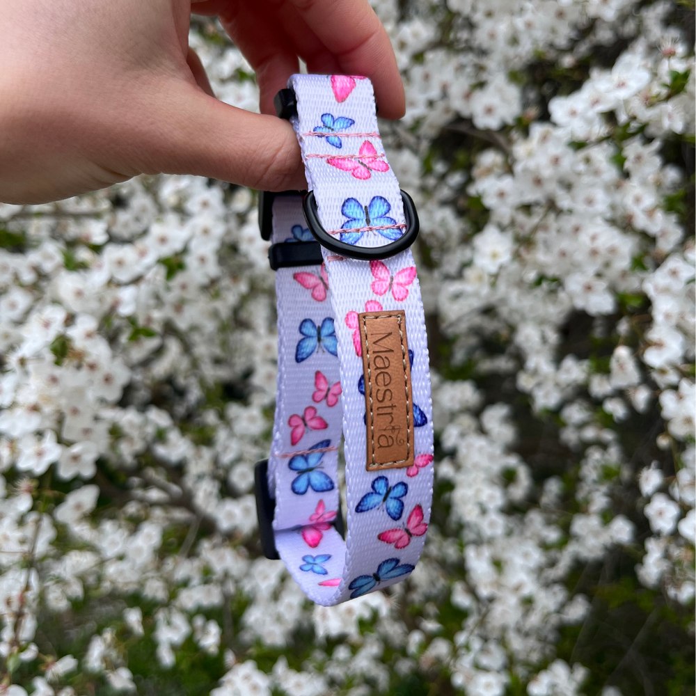 Obroża wykonana z wysokiej jakości taśmy nośnej, drukowanej sublimacyjnie. Zapewnia bezpieczeństwo, wygodę i trwałość. Wyposażona w solidne zapięcia i regulację, gwarantuje bezpieczeństwo podczas spacerów.