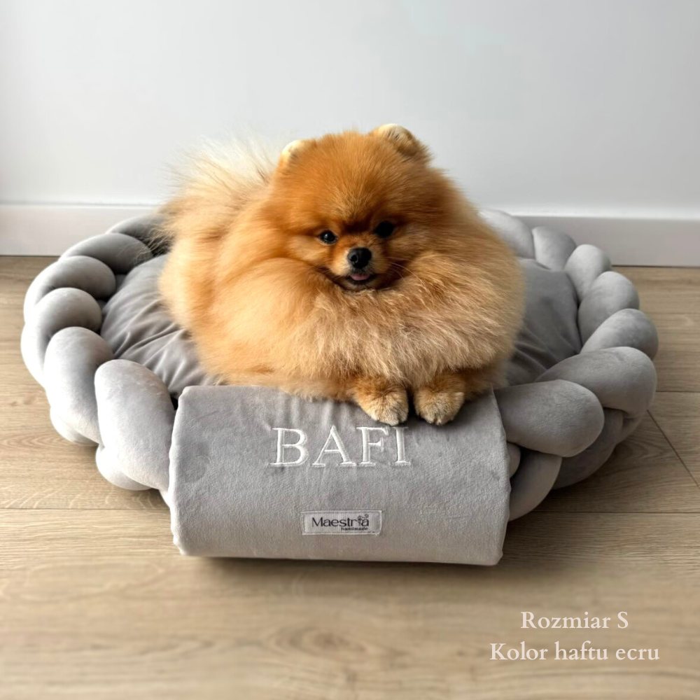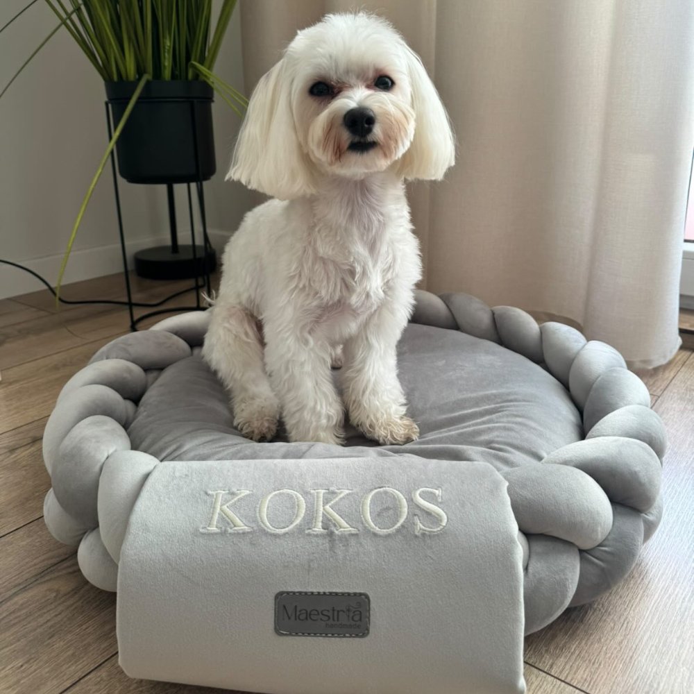 Zdejmowana poszewka ułatwia pranie i utrzymanie świeżości, a antypoślizgowy spód zapewnia stabilność na każdej powierzchni. Dodatkowym wyróżnikiem jest możliwość personalizacji — każde legowisko może zostać ozdobione imieniem psa, dzięki czemu staje się jedyne w swoim rodzaju.